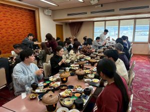 その後は、バスで移動して石川県の東急ホテルにチェックイン後、石川県を各班で散策し、夕飯に向かいました。料理も日本海側であったため、新鮮な海鮮料理がとっても美味しかったです。普段は違う部署でなかなか話せないメンバーとも、美味しい料理とお酒を囲めば会話が弾みます。「仕事の話は抜き!」と言いつつ、最後はやっぱり熱いビジョンの話になってしまっていたかもしれません(笑)。